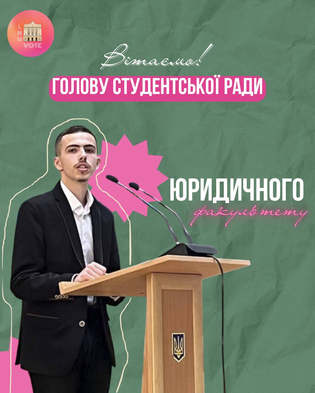 Вітаємо нашого побратима Петришина Владислава Юрійовича із обранням головою Студентської ради юридичного факультету Львівського університету.