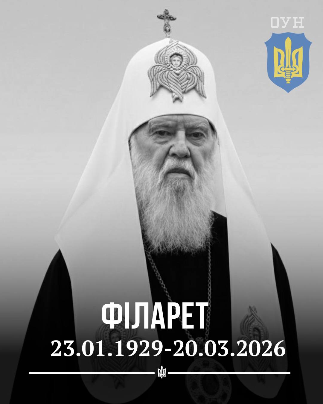 Організація Українських Націоналістів висловлює глибоке співчуття з приводу завершення земного шляху Святійшого Патріарха Філарета.
